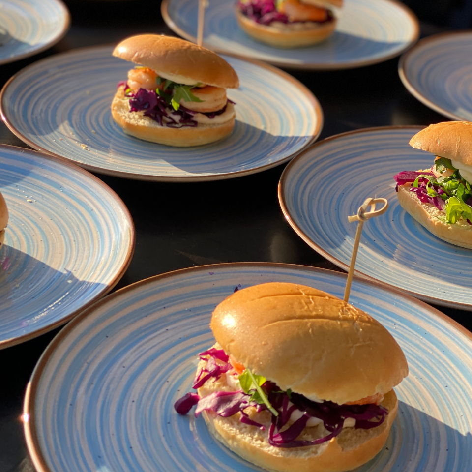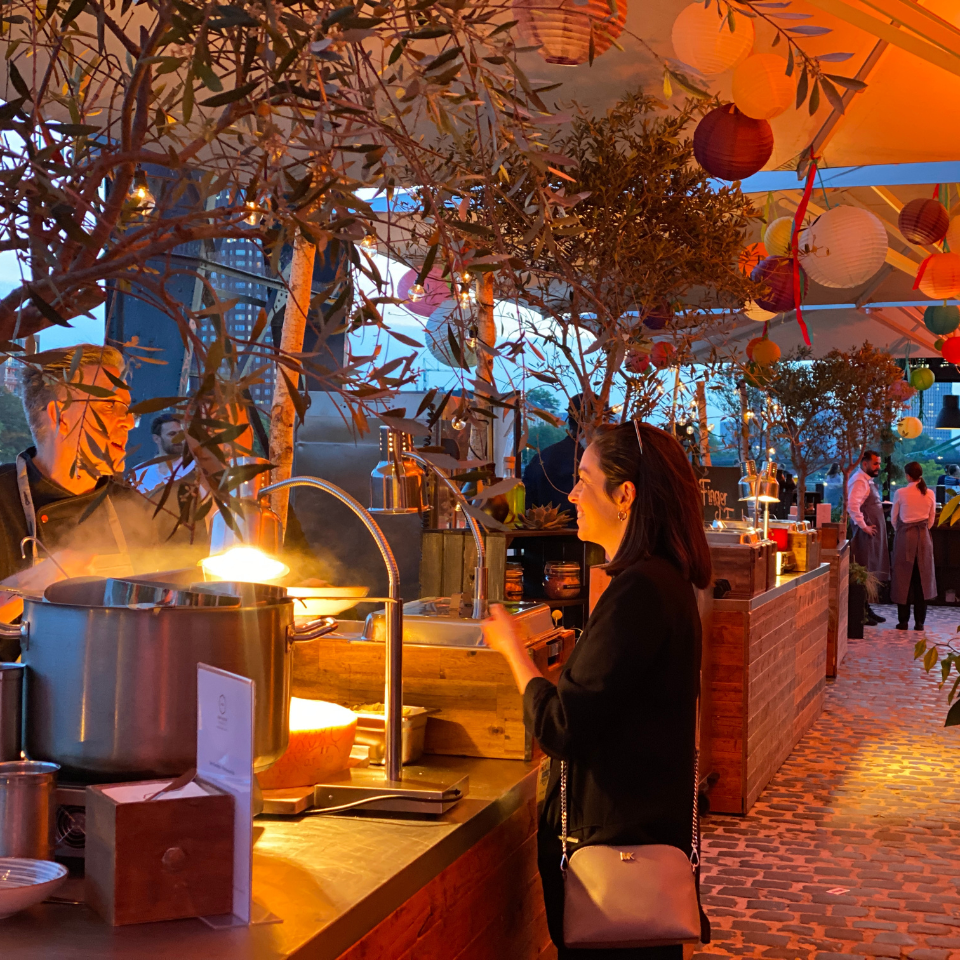 Der Abend lebte von Offenheit, Bewegung und einem freien Miteinander. Gäste aus verschiedenen Ländern und Bereichen des Unternehmens kamen zusammen, um jenseits des klassischen Business Rahmens zu feiern, sich auszutauschen und neue Impulse mitzunehmen. Unsere Aufgabe war es, diesen Fluss zu unterstützen und ein kulinarisches Konzept zu entwickeln, das belebt, überrascht und den Charakter der Offsite Party verstärkt.